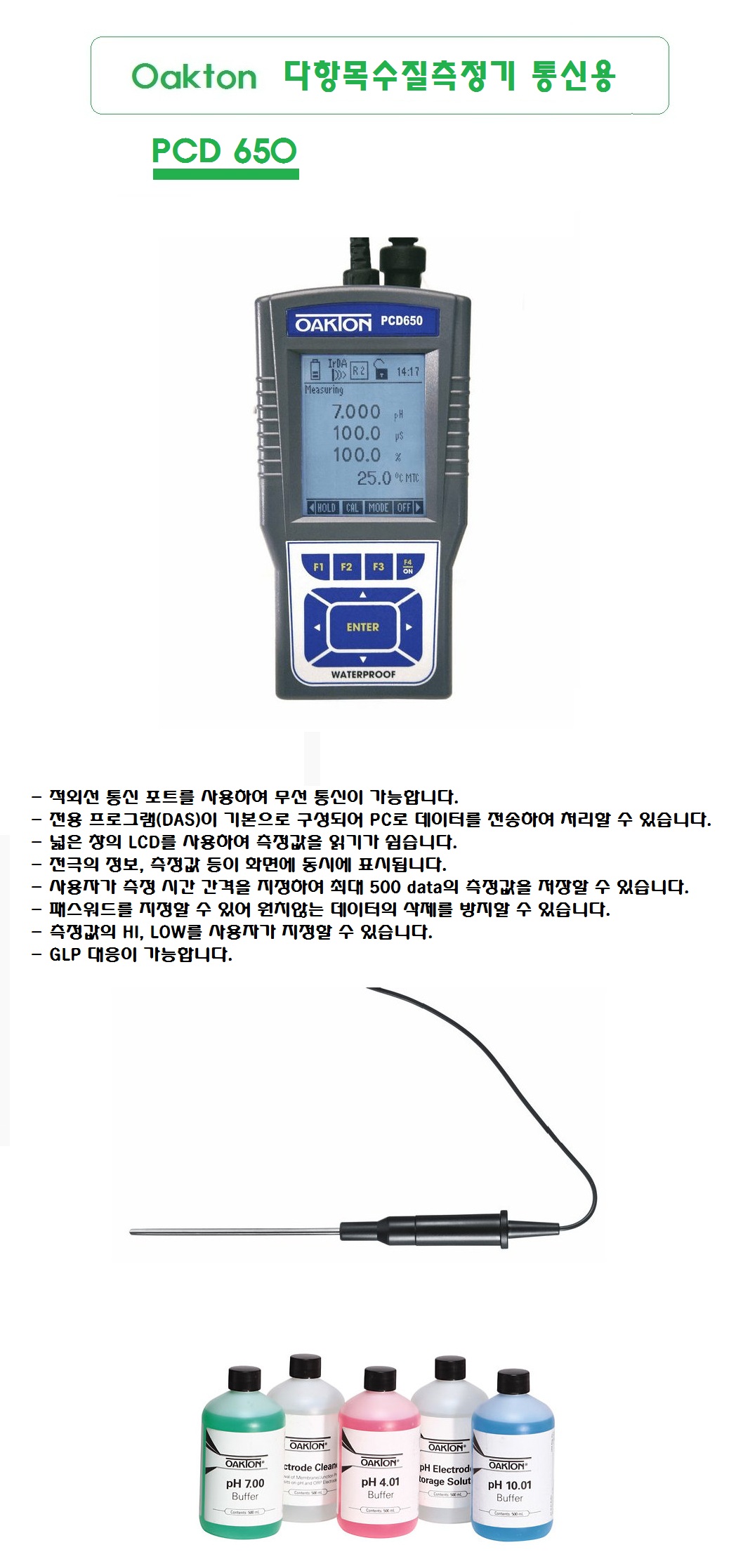 Á¦Ç°¸í Åë½Å¿ë ¼öÁúÃøÁ¤±â, ´ÙÇ׸ñ ¼öÁúÃøÁ¤±â, Åë½Å¿ë, Oakton PCD650 ,