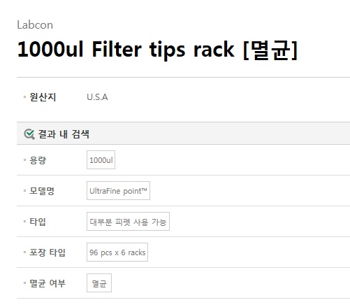 Á¦Ç°¸í ÇÊÅÍÇü ÆÁ, 1000ul Filter tips rack [¸ê±Õ] HLA-1057-965-018