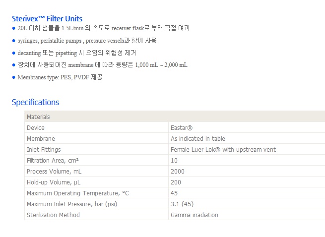 »ùÇà Àüó¸® ÇÊÅÍ, [SVGP01015] ,Sterivex-GP PES, gamma irradiated, 0.22 µm, 15/pk
