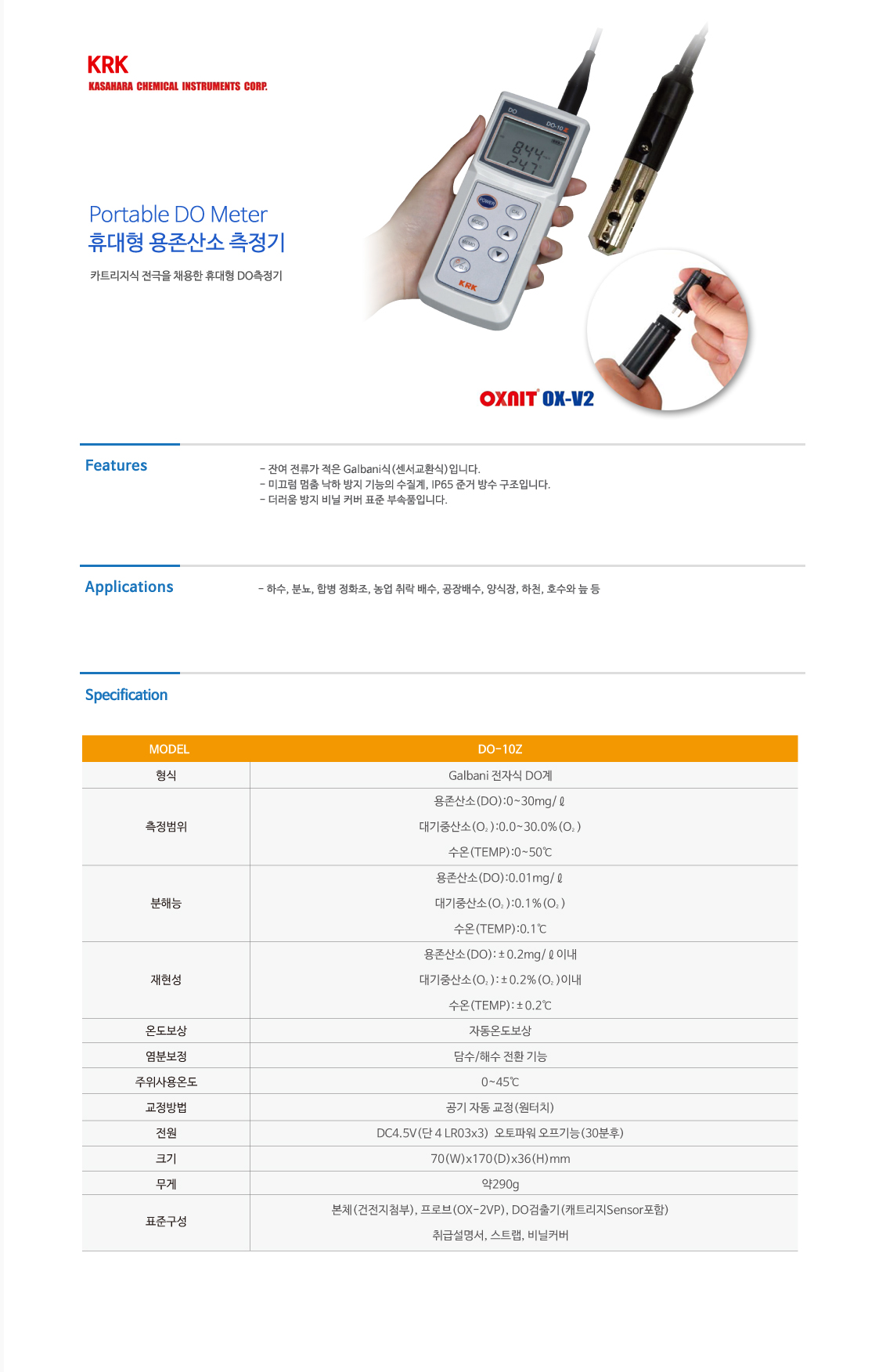 Á¦Ç°¸í ¿ëÁ¸ »ê¼Ò ÃøÁ¤±â DO-10Z 33-0914