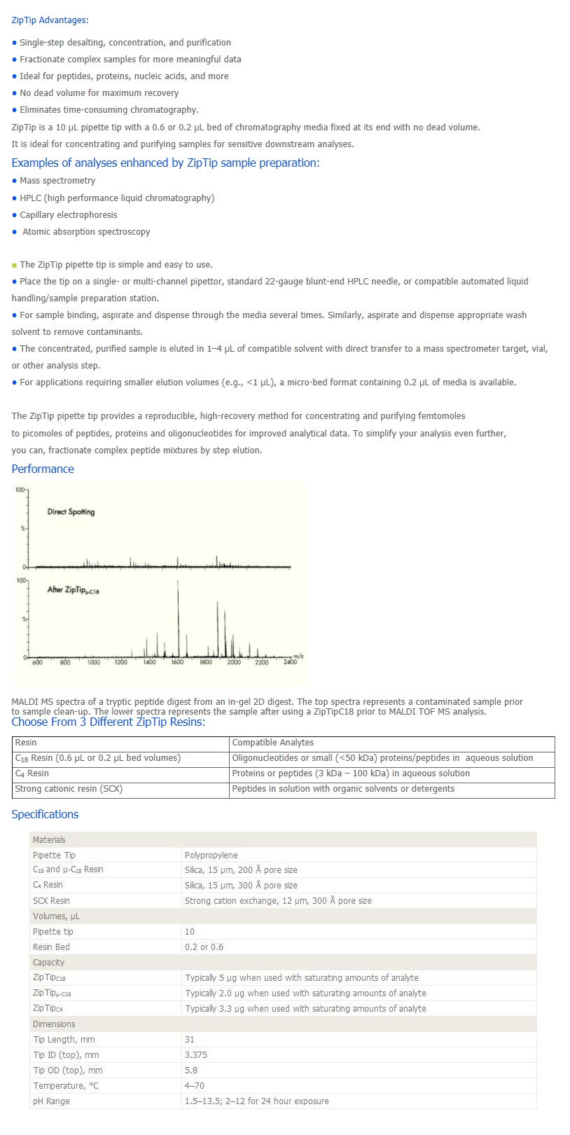 Á¦Ç°¸í ÆÄÀÌÆêÆÁ , [ZTSCXS096], ÆÄÀÌÆê Tips, ZipTip with 0.6 µL strong cation resin, 96/pk