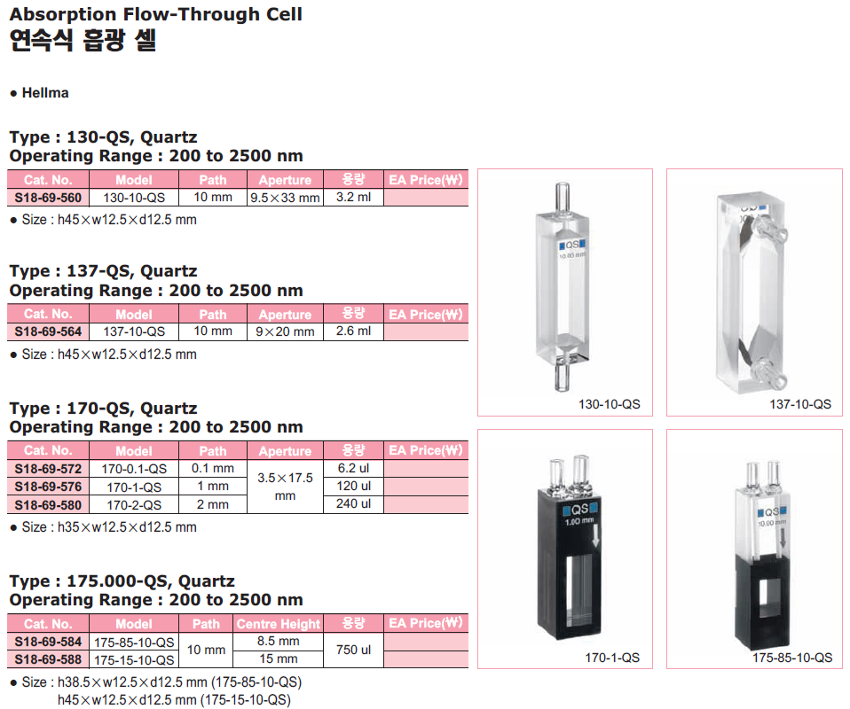 Á¦Ç°¸í Absorption Flow-Through Cell / ¿¬¼Ó½Ä Èí±¤ ¼¿ 130-10-QS