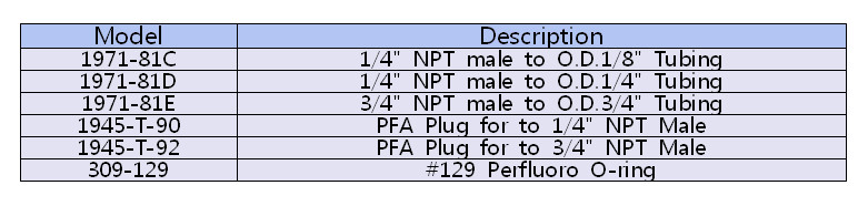 ¡á Perfluoro O-ring, 1¡¿3/4¡±¿Í 6¡¿1/4¡± PTFE Plug¿Í °°ÀÌ °ø±ÞµÊ