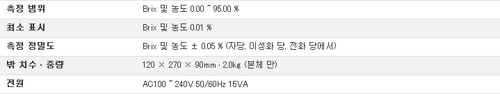 • ÃøÁ¤ ¹üÀ§´Â Brix ¡¤ °¢ ³óµµ ¸ðµÎ ¿ÍÀÌµå ·¹ÀÎÁö·Î ÃøÁ¤ Á¤¹Ðµµ°¡ ¡¾ 0.05 % ¹× Á¤¹ÐÀÔ´Ï´Ù.