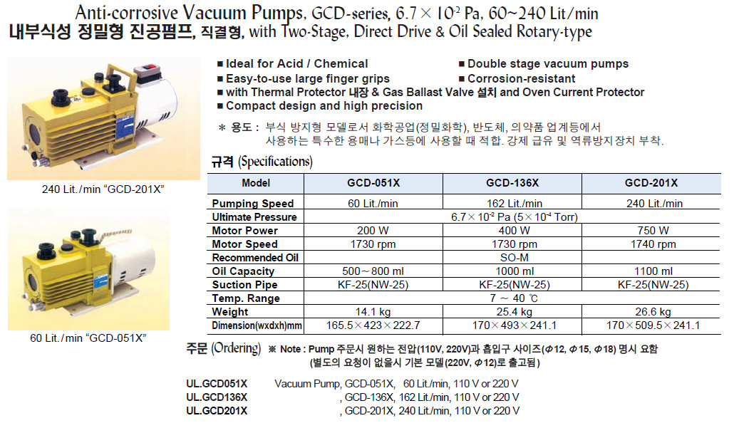 ¡°Ulvac¡± Anti-corrosive Vacuum Pumps, GCD-series, 6.7¡¿10-2 Pa, 60~240 Lit/min