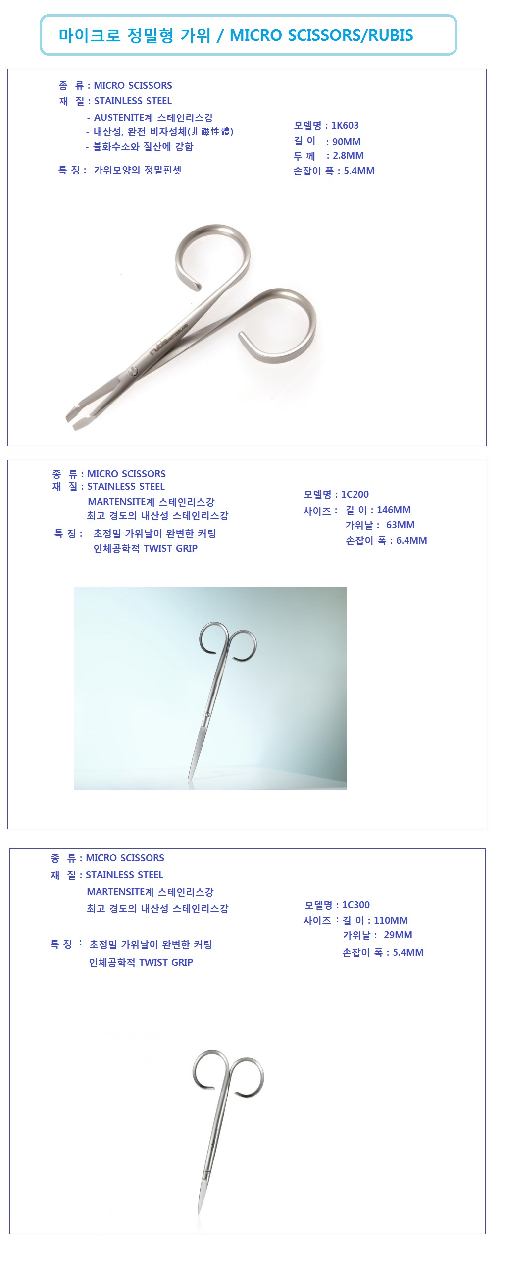 Á¦Ç°¸í Á¤¹Ð°¡À§, °¡À§, ½ºÀ§½º RUBIS ,1C200 , 1K603 , 1C300 ,Scissors, Metzenbaum