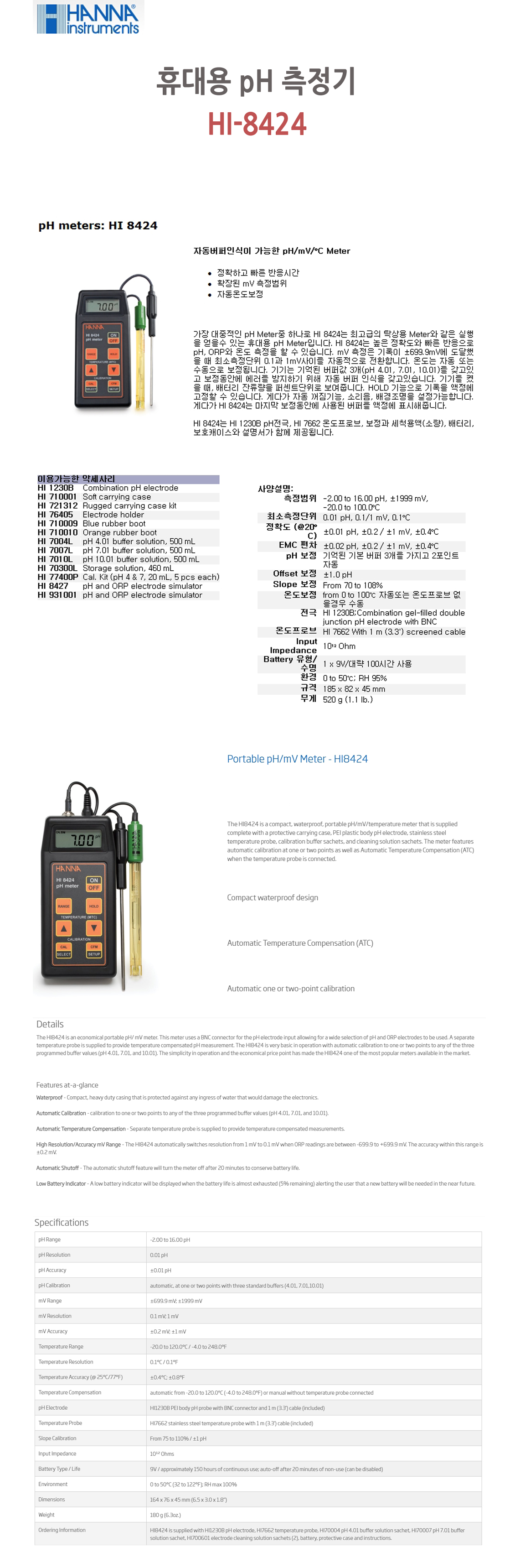 Á¦Ç°¸í ÈÞ´ë¿ë pH/mV ÃøÁ¤±â HI 8424