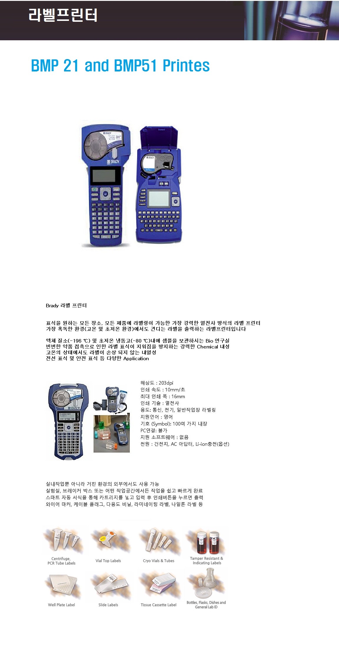 Á¦Ç°¸í ½ÇÇè½Ç¶óº§ÇÁ¸°ÅÍ, BMP21/BMP51 //